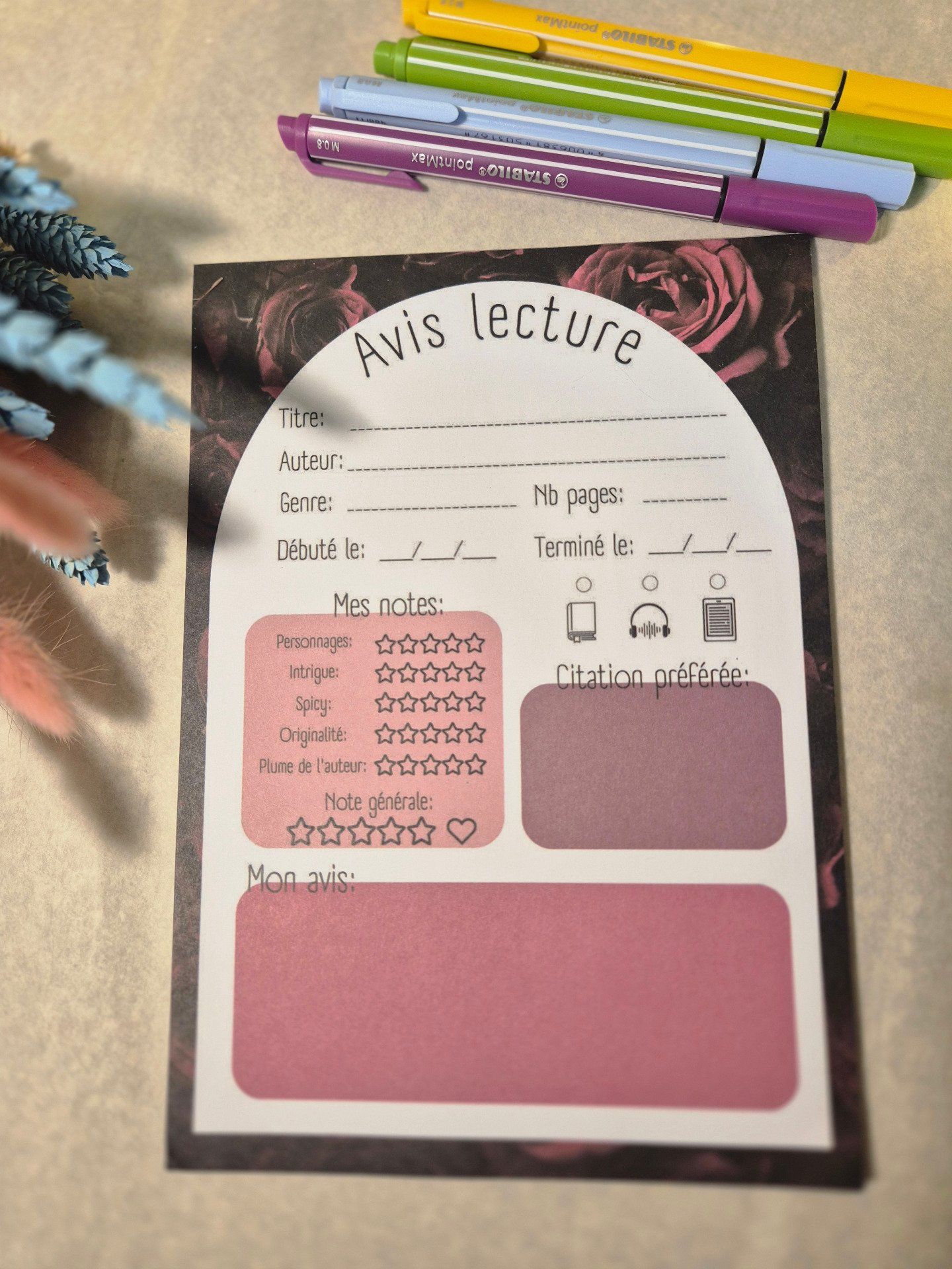Idéal pour glisser dans votre livre à la fin de votre lecture.